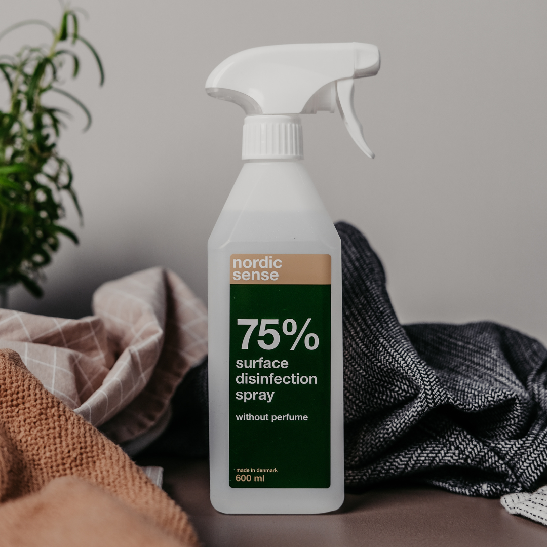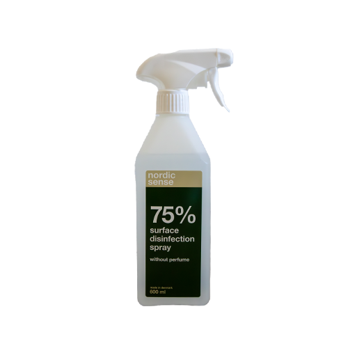 Overflade desinfektion i en smart og anvendelig sprayflaske. Indeholder 600 ml. parfumefri 75 % sprit indhold. Ej anvendeligt til direkte brug på hud. Produceret i Danmark